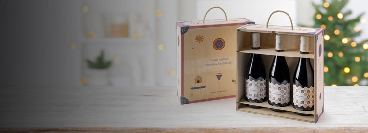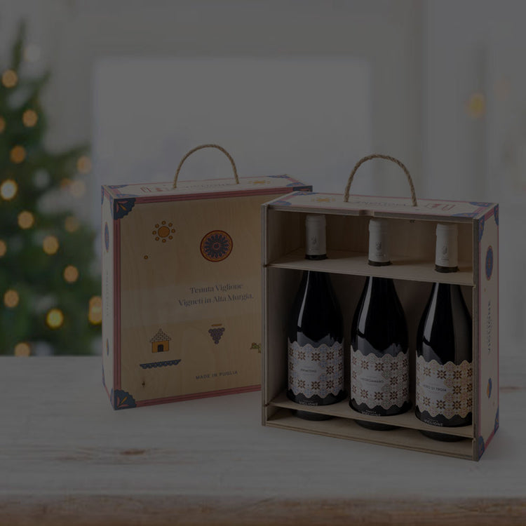 Blend è la collezione che unisce Primitivo, Aleatico e Nero di Troia, lasciando che ogni vendemmia trovi il suo equilibrio.